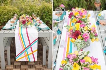 使用彩色胶带装饰原本简单的餐桌布,与鲜花完美组合