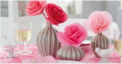 将彩色餐巾纸折成花型,使用透明胶带固定花柄
